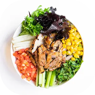 Mixed Greens, Diced Tomatoes, Jicama, Corn, Cucumber, Mint, Crispy Shallots.